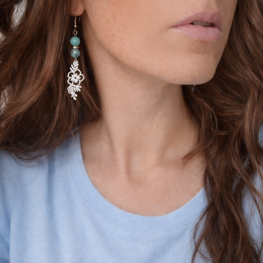 Boucles d’oreilles JENNY perles turquoise - Créations Uniques