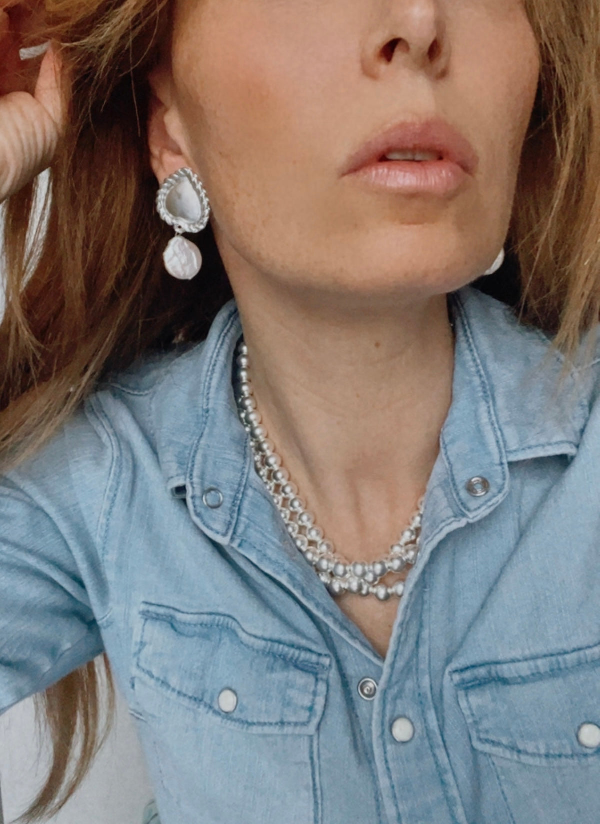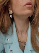 Matériaux :  Métal en étain plaqué or 24 carats/argent sterling / or rose. Perle d'eau douce