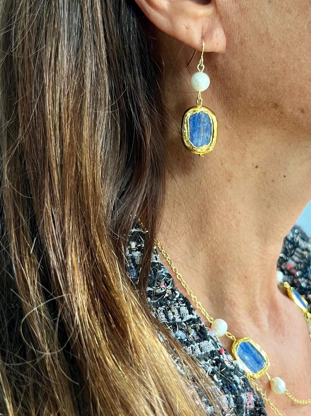 E75540 Kyanite and Mini Freshwater Pearl Drop Earrings - Karine Sultan